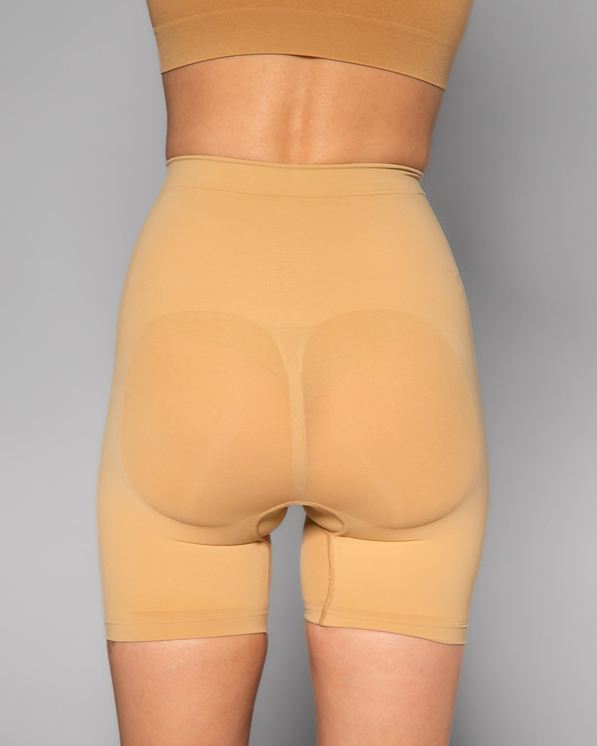 Slip it on and smooth it out. This pull-on shaper delivers breathable, high-control smoothing under skirts and dresses—no lines, no roll, just confidence. A high waistband with a 1/2" silicone bead helps it stay put, while the soft, seamless stretch knit hugs comfortably through the mid-thigh.
